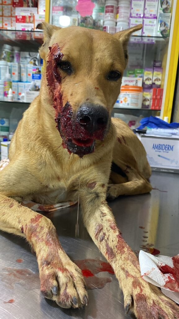 La pequeña Miel fue atropellada y abandonada en la carretera Mochis-Topo. Con heridas en la cara, pérdida considerable de sangre y en estado de shock, fue rescatada directamente por la asociación Pet Guardians.